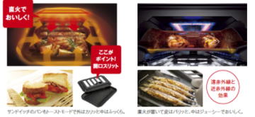 遠赤外線と近赤外線の効果で、素材 の中からじんわり調理。焼きムラも 少なく、こんがりと直火で焼き上げ ます。 |