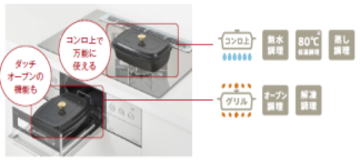 温度を設定すれば、火加減を自動調 節します。また、W温度おまかせで 左右同時に温度調節機能が使えるの で手際よく料理できます。 |